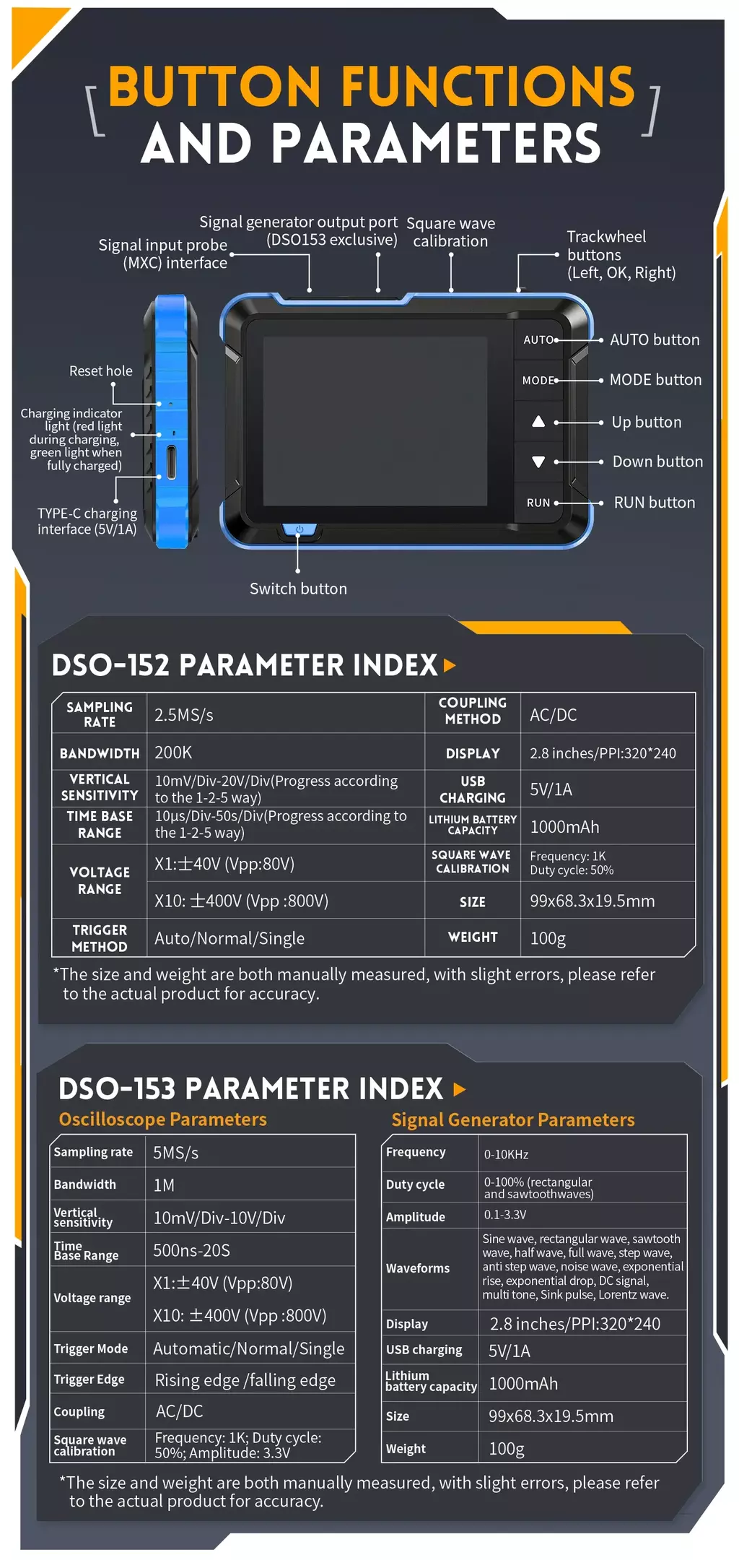 DSO153 2 IN 1—— 1MHz Bandwidth* Mini Oscilloscope *